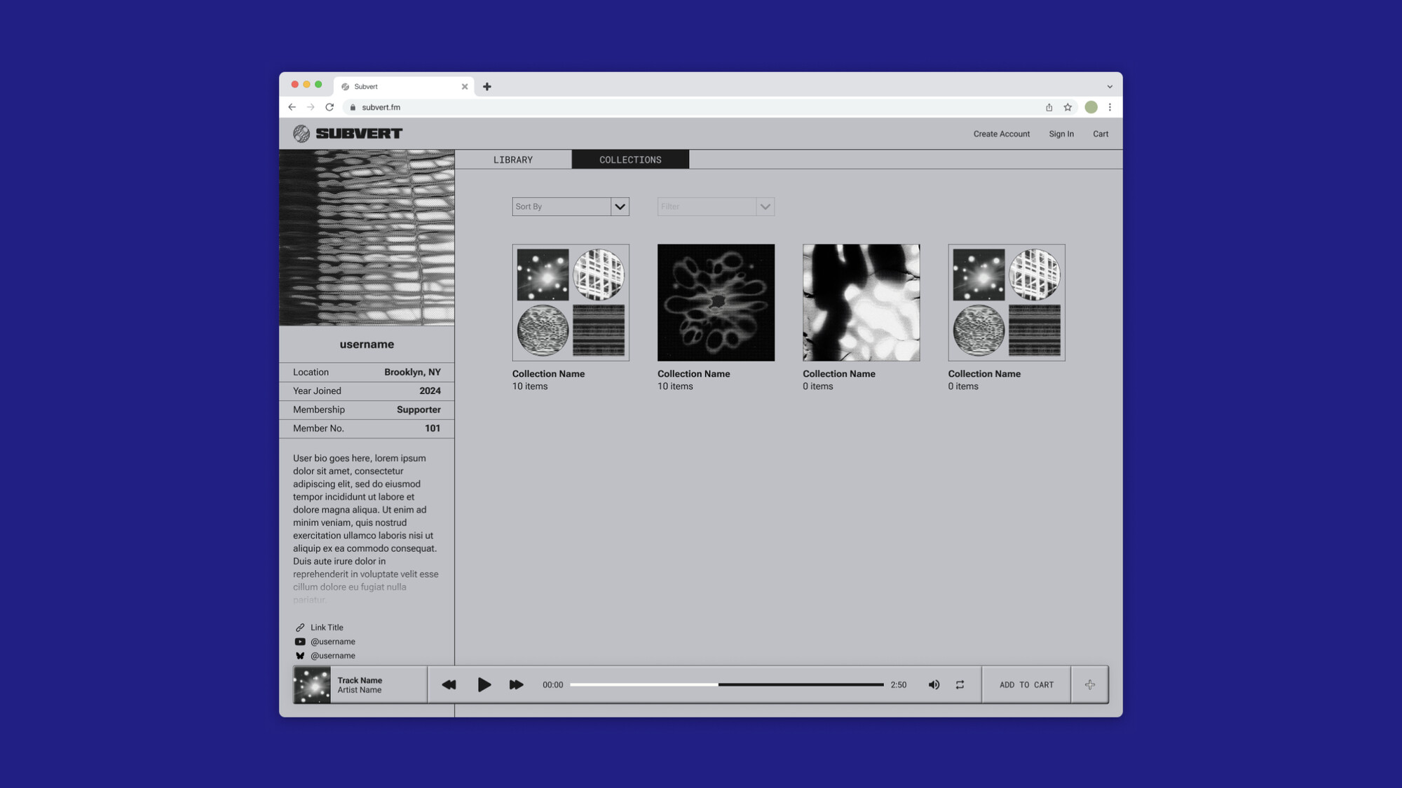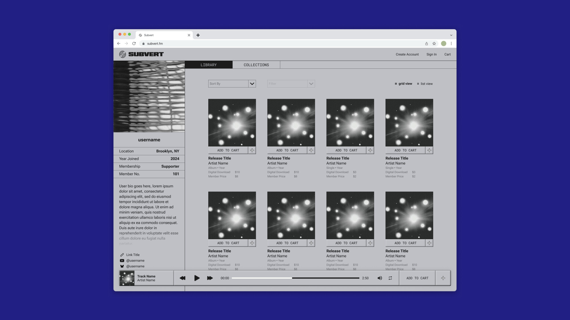 - Member profile pages that display your purchased tracks in your Library