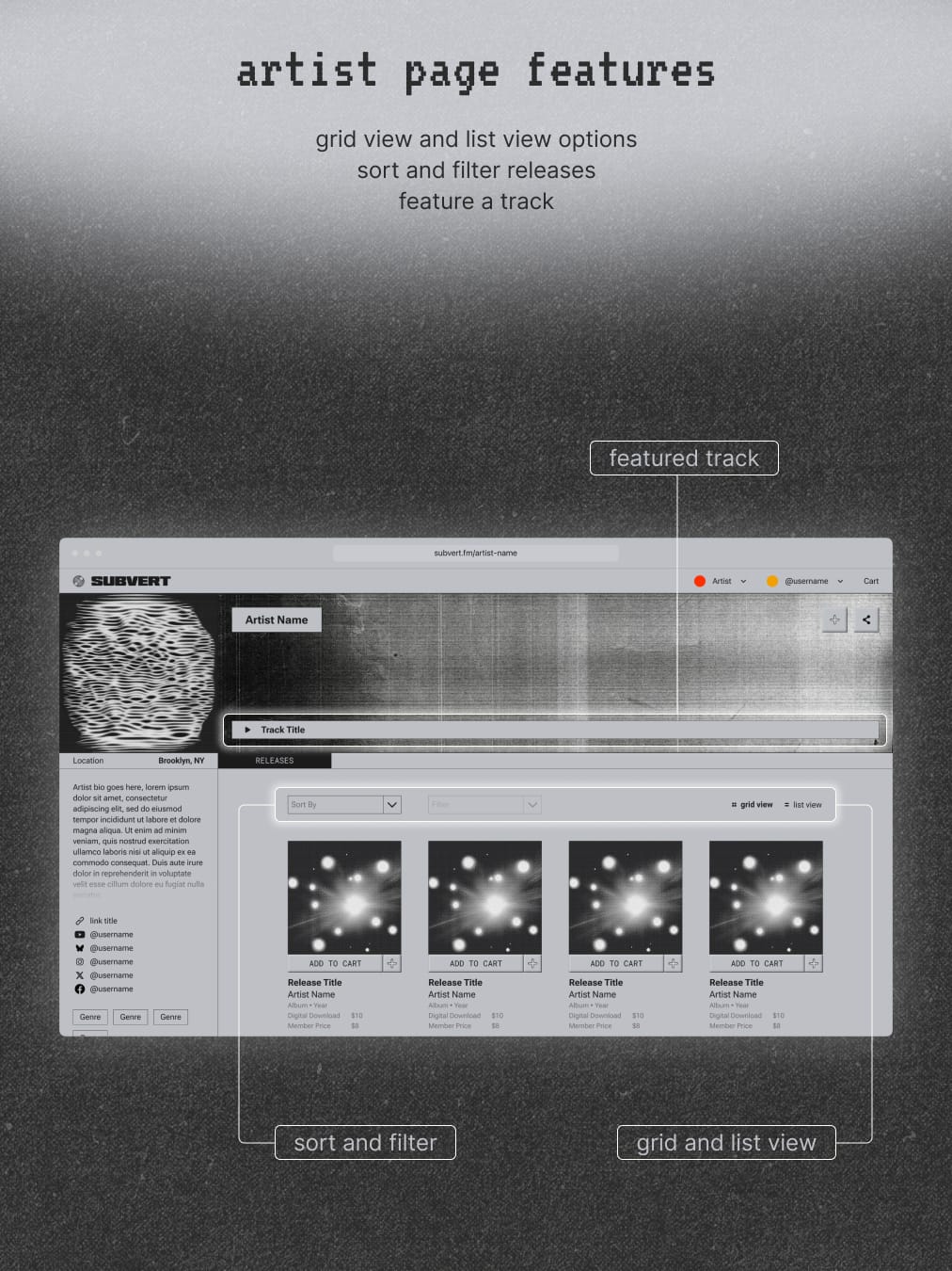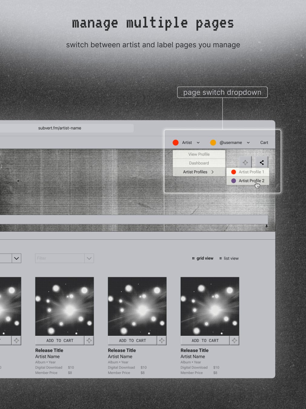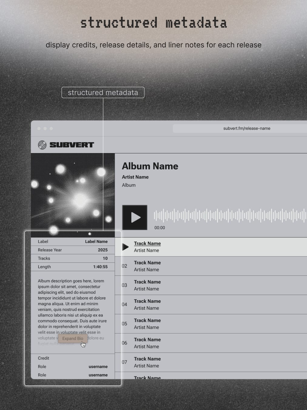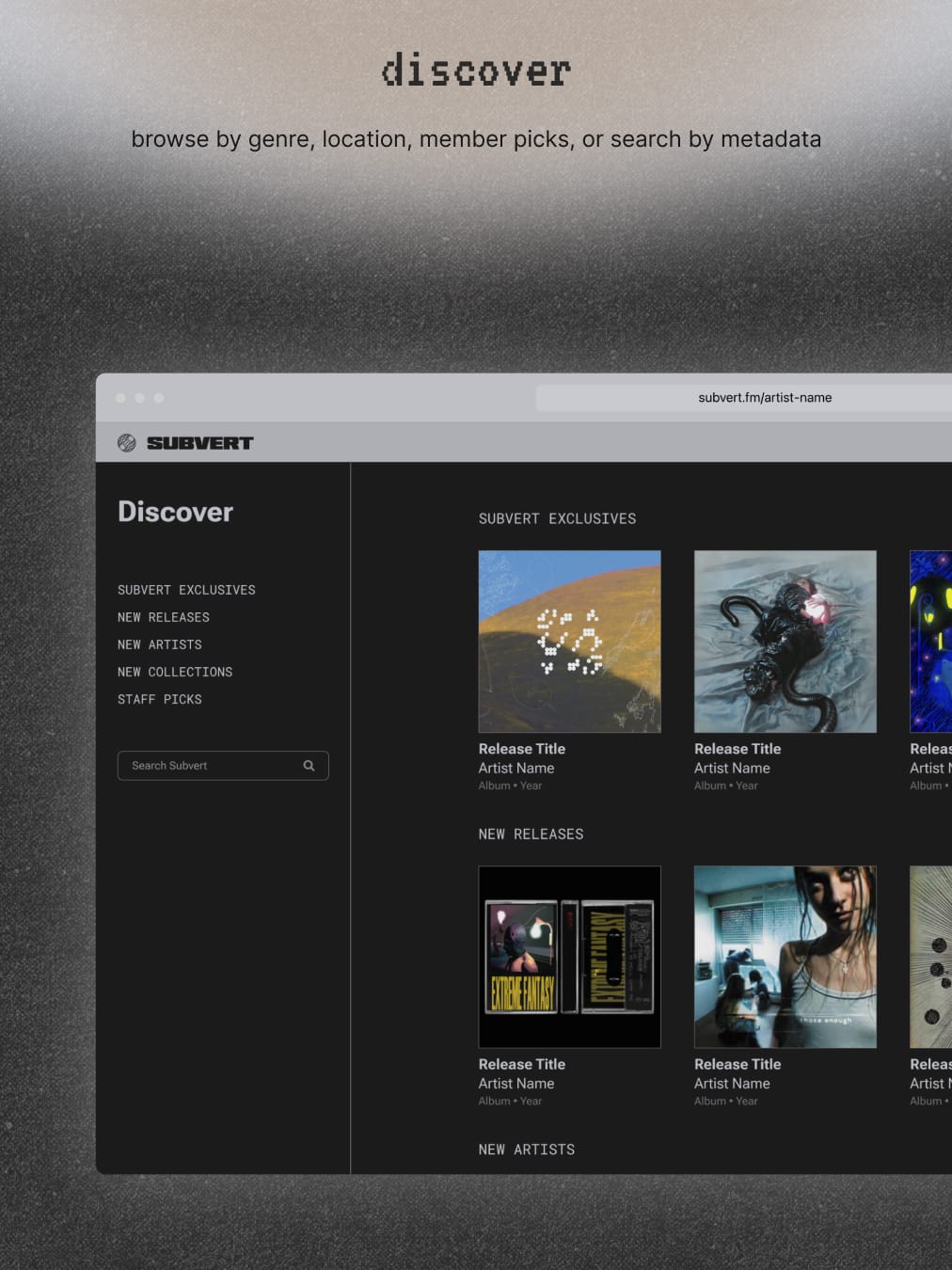 Before we get there, we want to give an early look at what’s being built. From artist upload flows to streaming and in-platform previews, we’re sharing glimpses of the Subvert platform as it comes to life.
