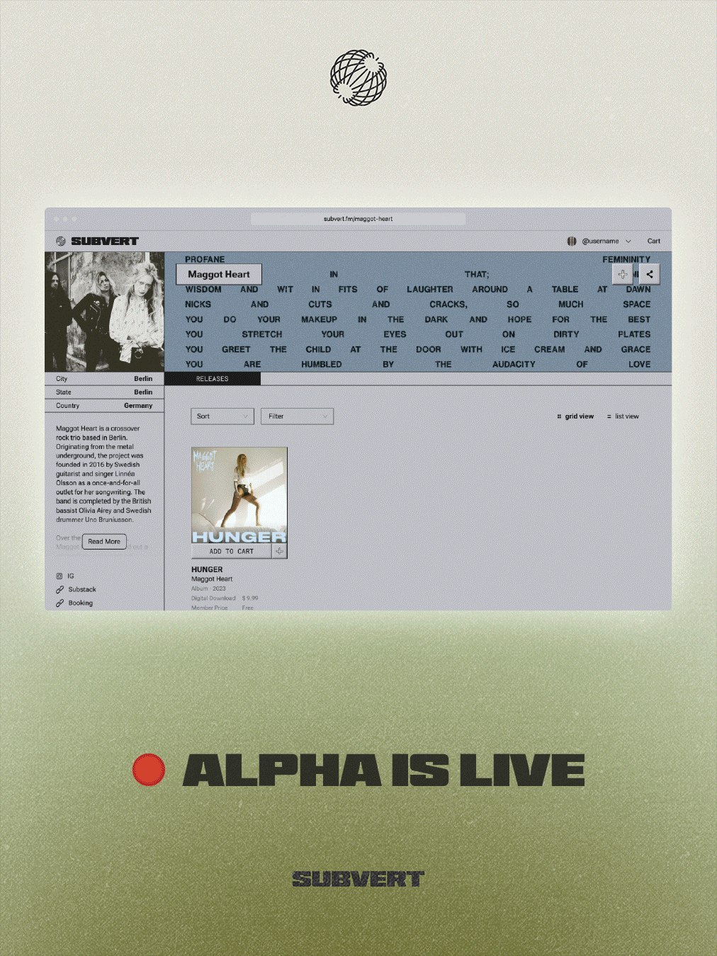 Not a member yet? Join at subvert.fm for access before December's public launch.